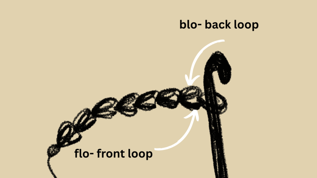 the complete stitch will look like a braid or a V shape when you look at your piece from above, while the front loop is the closet one to you, and the back in the opposite side of the same stitch.