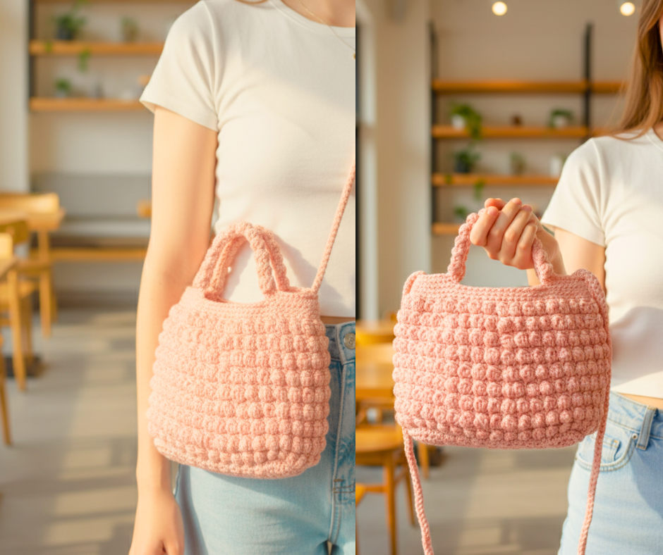 Crochet your new Bobble Stitch Bag. It’s perfect for you because it combines a trendy texture with practical style.